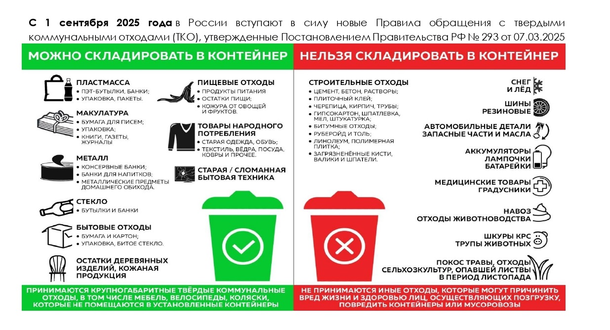 С 1 сентября 2025 года в России вступили в силу новые Правила обращения с твёрдыми коммунальными отходами (ТКО), утверждённые Постановлением Правительства РФ от 07.03.2025 №293.