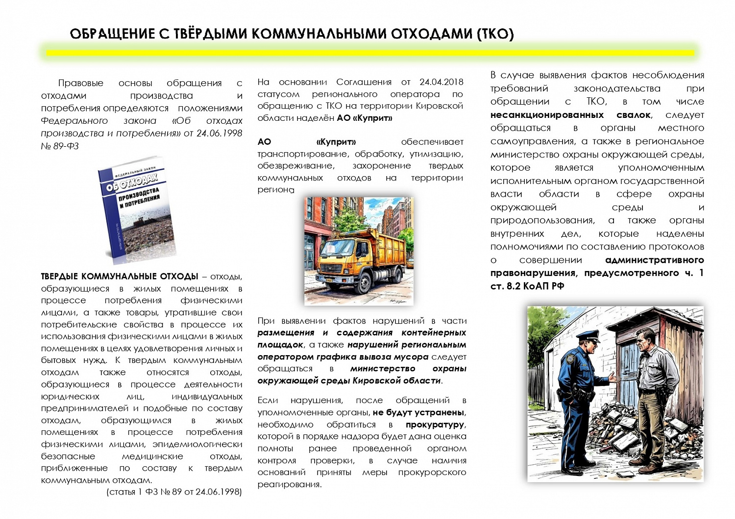 Кировская межрайонная природоохранная прокуратура подготовила для вас листовки с Правилами обращения с твердыми коммунальными отходами (ТКО) (на фото).